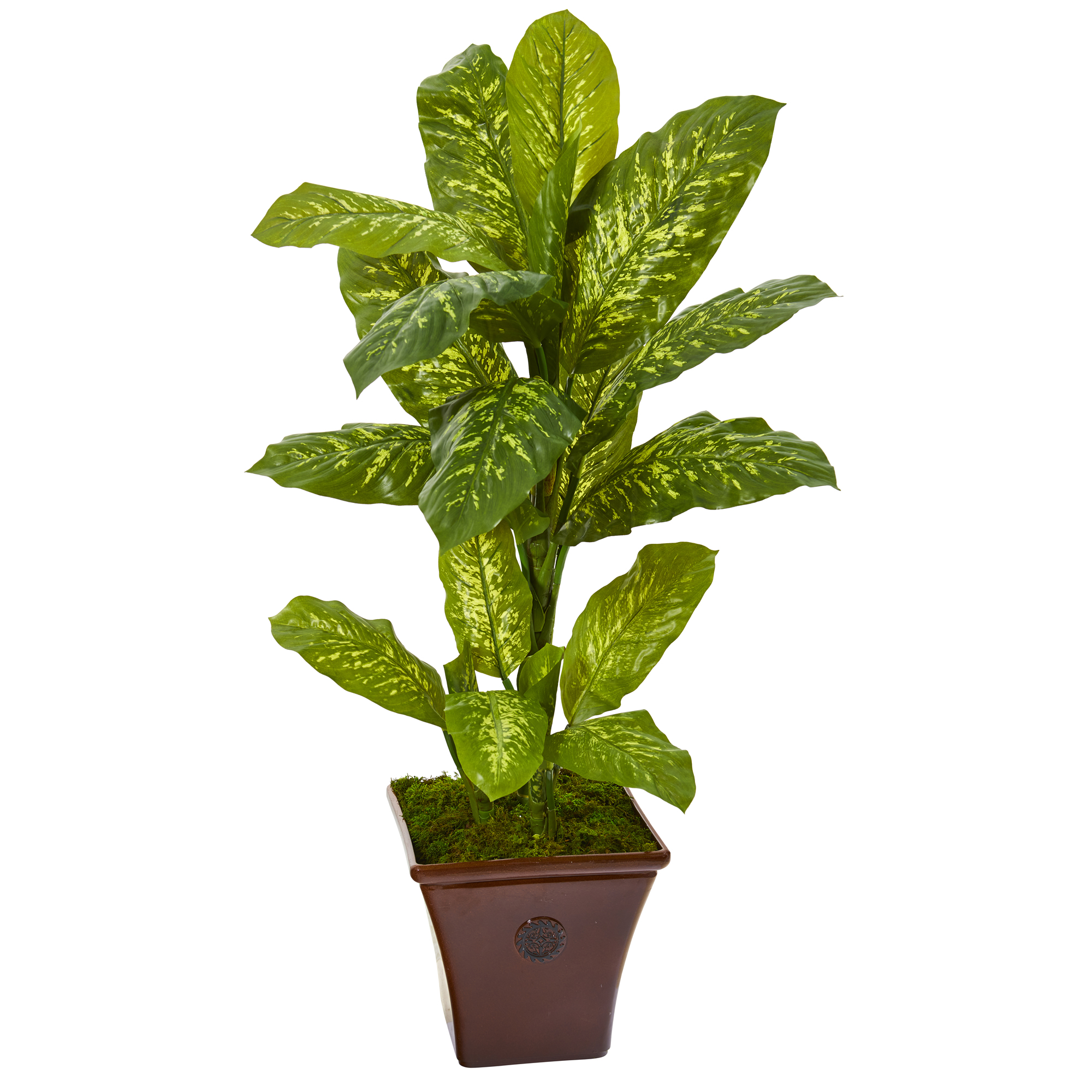 Nearly Natural 4ft Dieffenbachia Artificial Plant In Brandy Planter Real Touch Walmart Com